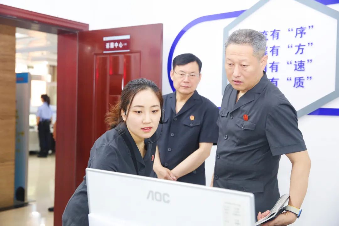 调研组深入郊区桃林沟村对我市法院司法服务乡村振兴工作进行实地调研,视察了阳泉中院诉服大厅、少年法庭、法警室并对相关工作进行了了解。