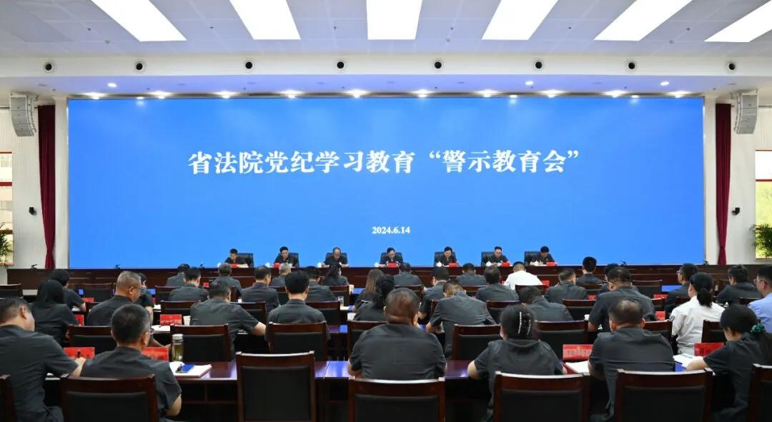 6月14日下午,省高院召开党纪学习教育警示教育会,深入学习贯彻习近平总书记关于全面加强党的纪律建设的重要论述,落实党中央、省委关于开展党纪学习教育部署要求,观看警示教育片《不可逾越的底线》,通报全省法院违纪违法典型案例,教育引导广大党员干警自觉学纪、知纪、明纪、守纪,推动党纪学习教育走深走实、见行见效。省高院党组书记、院长冯军出席会议并讲话。