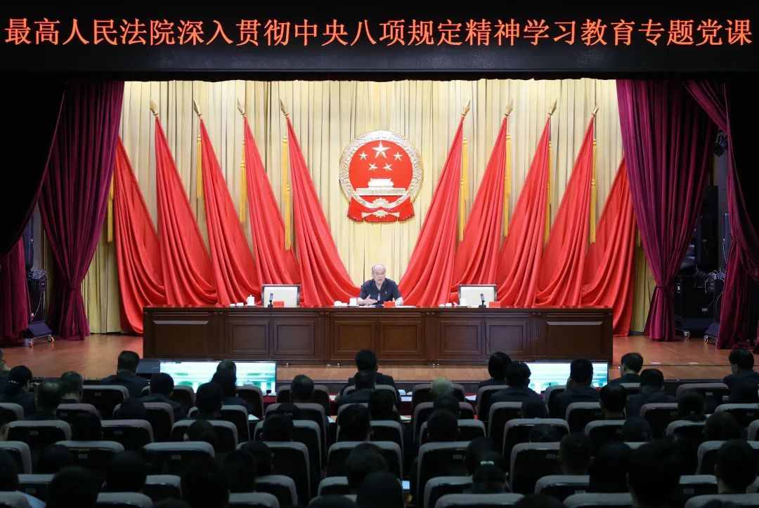 6月24日下午,最高人民法院党组书记、院长张军围绕深入贯彻中央八项规定精神,为院机关党员干部讲授专题党课。